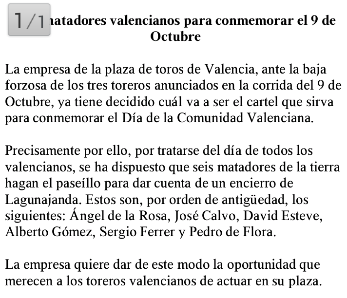 Palmitas a la actuación de Angel de la Rosa, dejó los mejores pasajes de la tarde, con más sabor dejando ver que el que tuvo retuvo, delante de un inválido, iendo de más a menos en el trasteo. Gesto torero el no querer dar la vuelta a pesar de la petición de trofeo y la posterior ovación.
